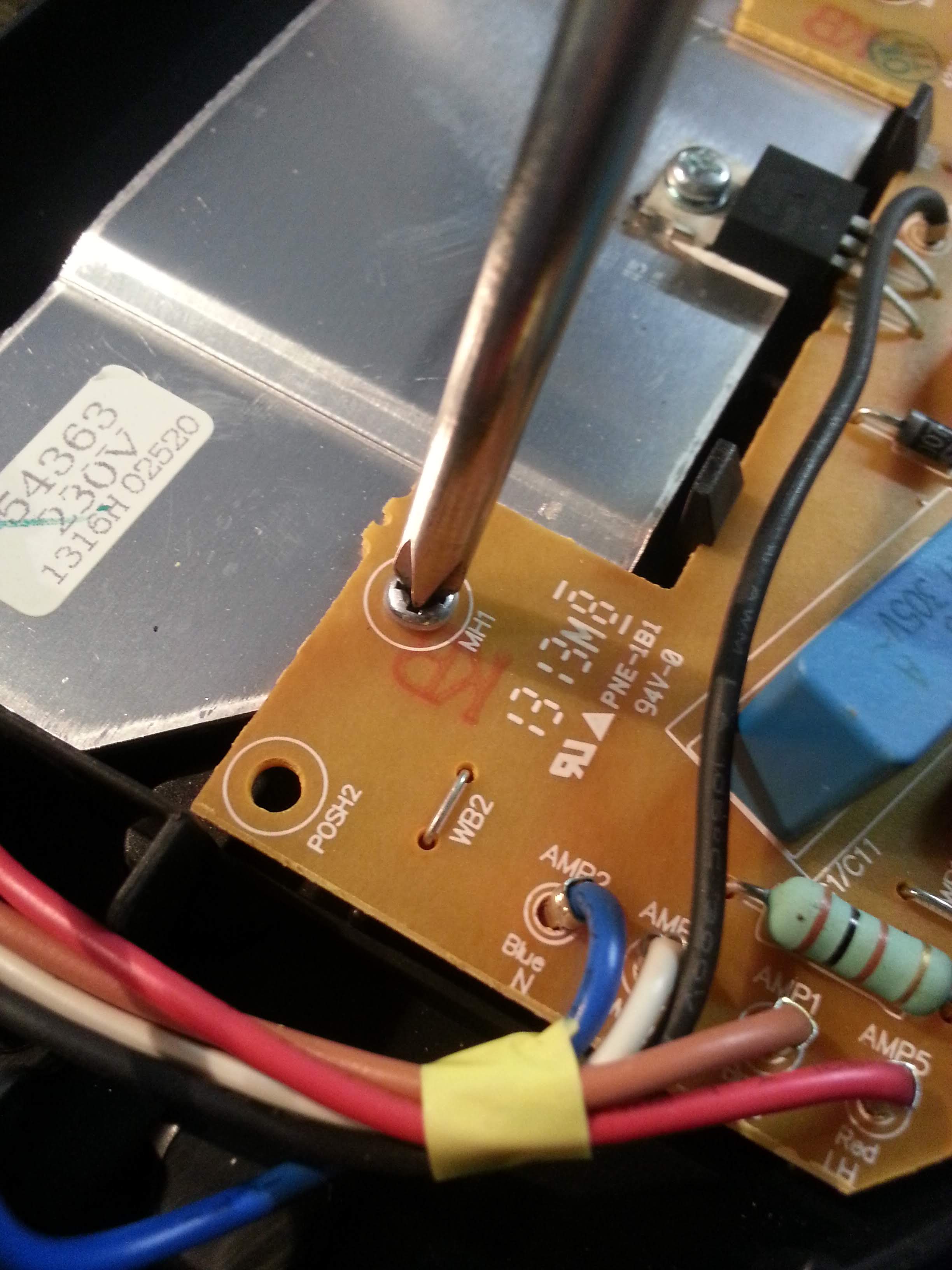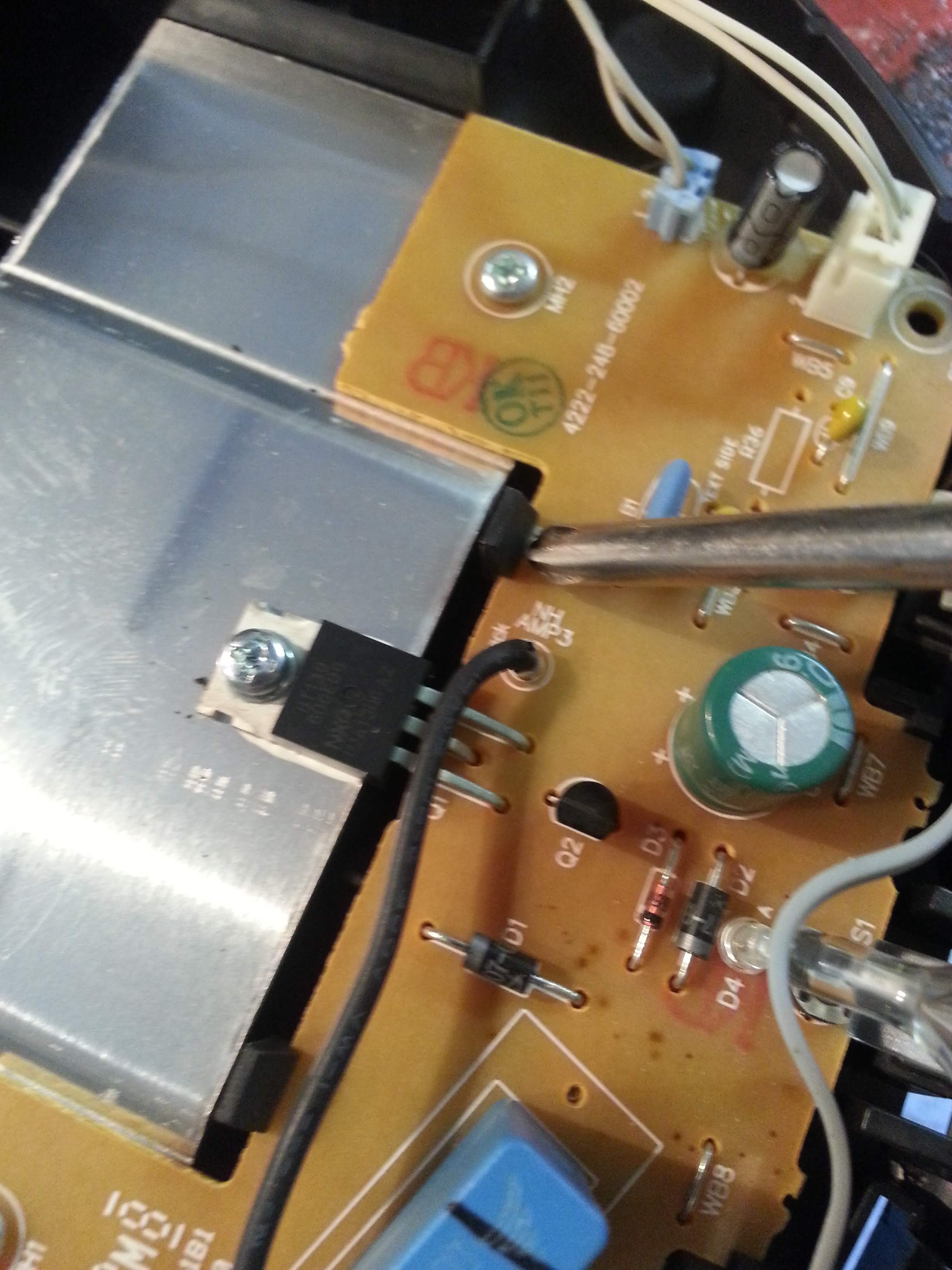 Nun löten wir den alten Kondensator aus und den neuen ein.